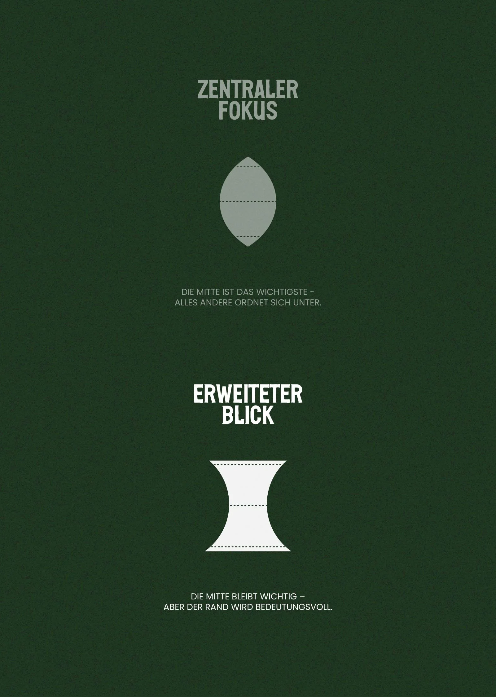 Eine konvexe Linse bündelt das Licht stark zur Mitte – der Fokus liegt klar im Zentrum, alles andere tritt in den Hintergrund. Übertragen heißt das: Die Mitte ist das Wichtigste, alles ordnet sich ihr unter.